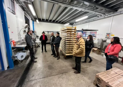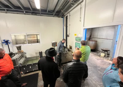 La visite a permis de comprendre les différentes phases du traitement : la fonte de la cire, sa filtration pour éliminer les impuretés, le moulage et enfin le gaufrage qui donnera aux abeilles la structure alvéolaire parfaite pour bâtir leurs rayons. Les participants ont également découvert l’importance de la qualité de la cire dans la santé des colonies d’abeilles.